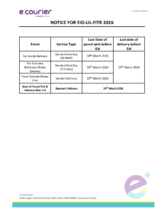 ইকুরিয়ার এখন দিচ্ছে সারা দেশব্যাপী ঘরে বসে পার্সেল পিক অ্যান্ড হোম ডেলিভারি এর সুবিধা। এখন আপনি যেকোনো জেলা থেকে আপনার ব্যক্তিগত যেকোনো পার্সেল/ডকুমেন্টস অথবা আপনার ব্যবসায়িক কোনো পণ্য ঘরে বসে বুকিং করে সহজে আপনার গ্রাহকের কাছে পৌঁছে দিতে পারবেন আবার আপনার গ্রাহকের দো